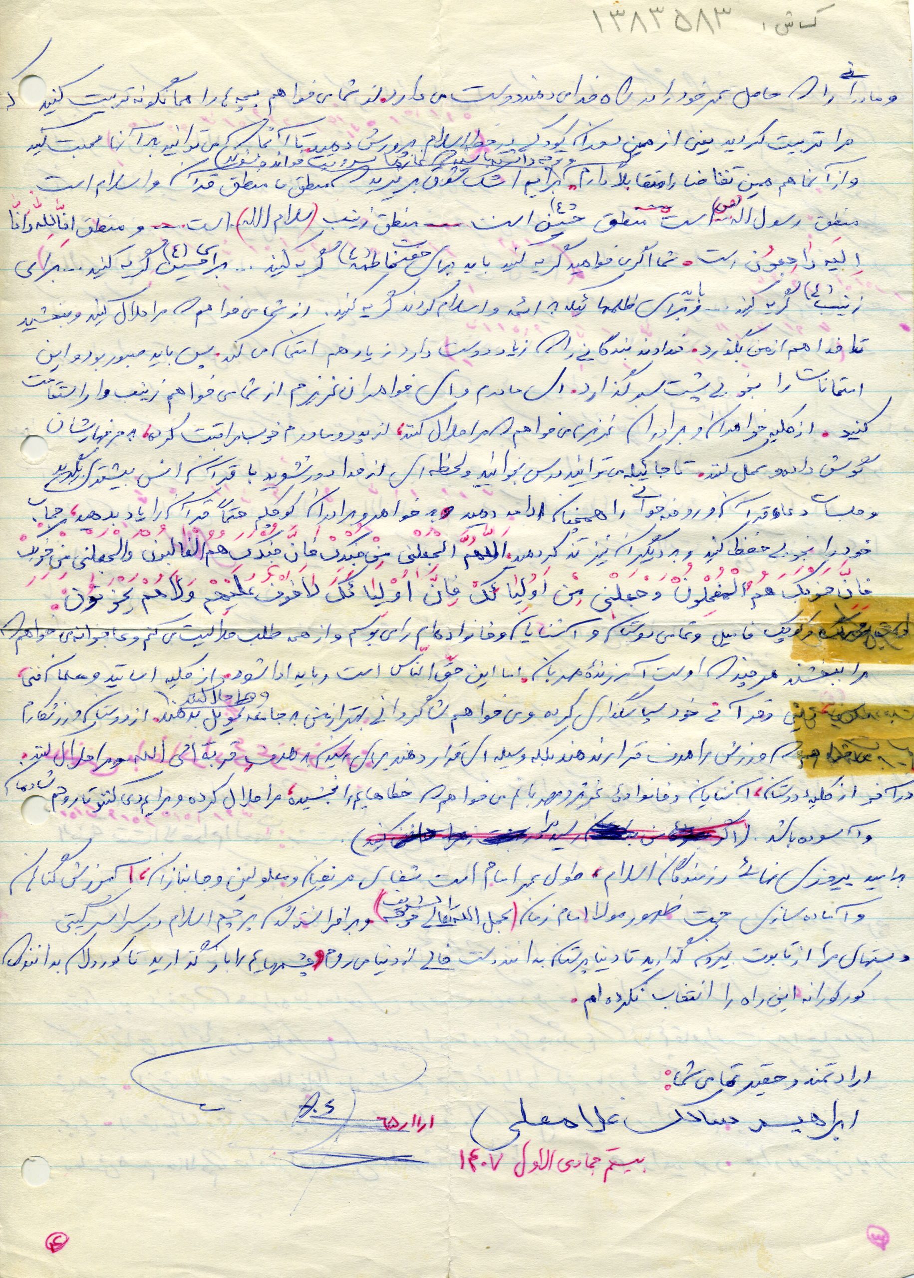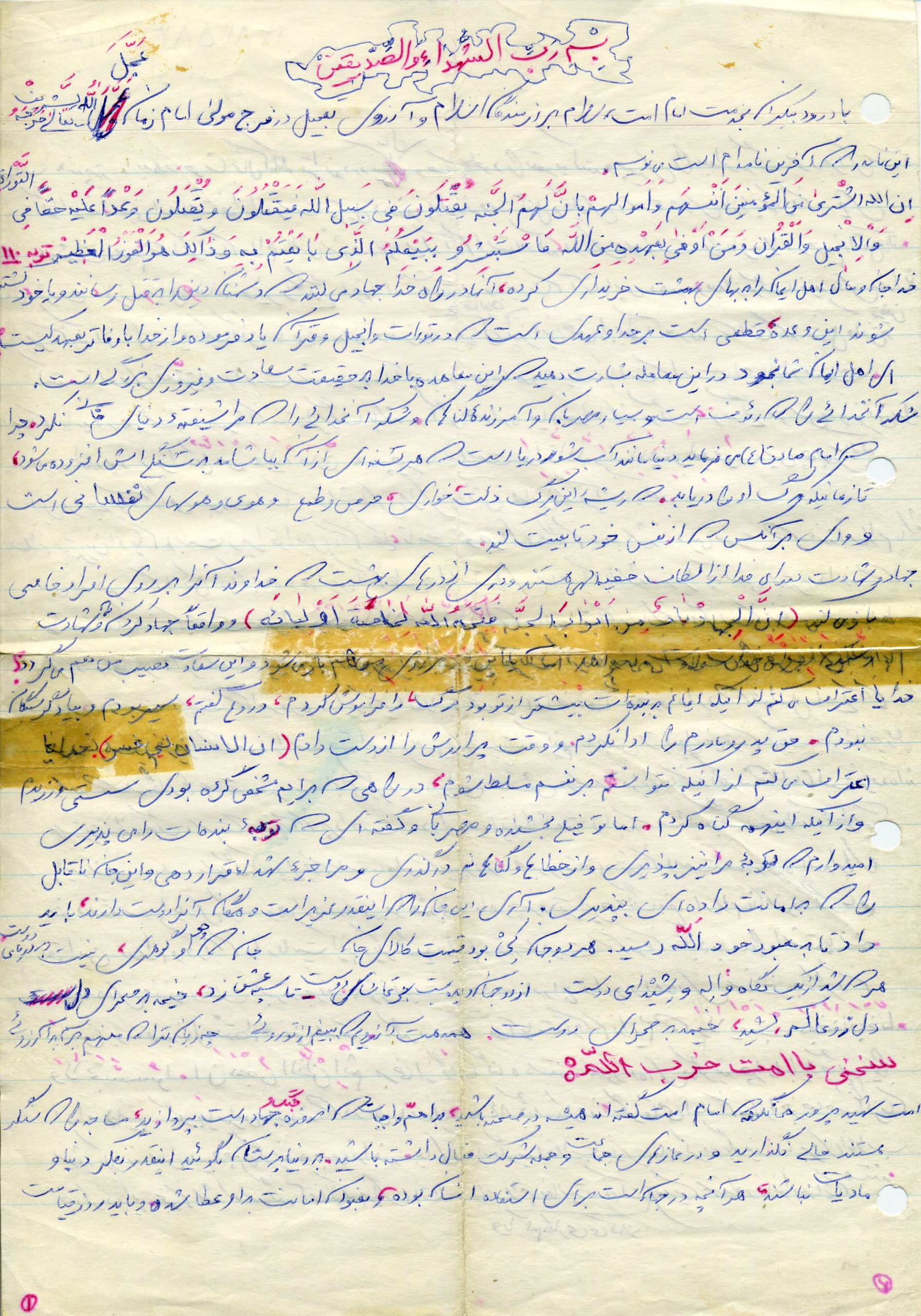 با درود بیکران به خدمت امام امت ، سلام بر رزمندگان اسلام و آرزوی تعجیل در فرج مولا عجل الله فرجه الشریف این نامه را که آخرین نامه ام است می نویسم.
