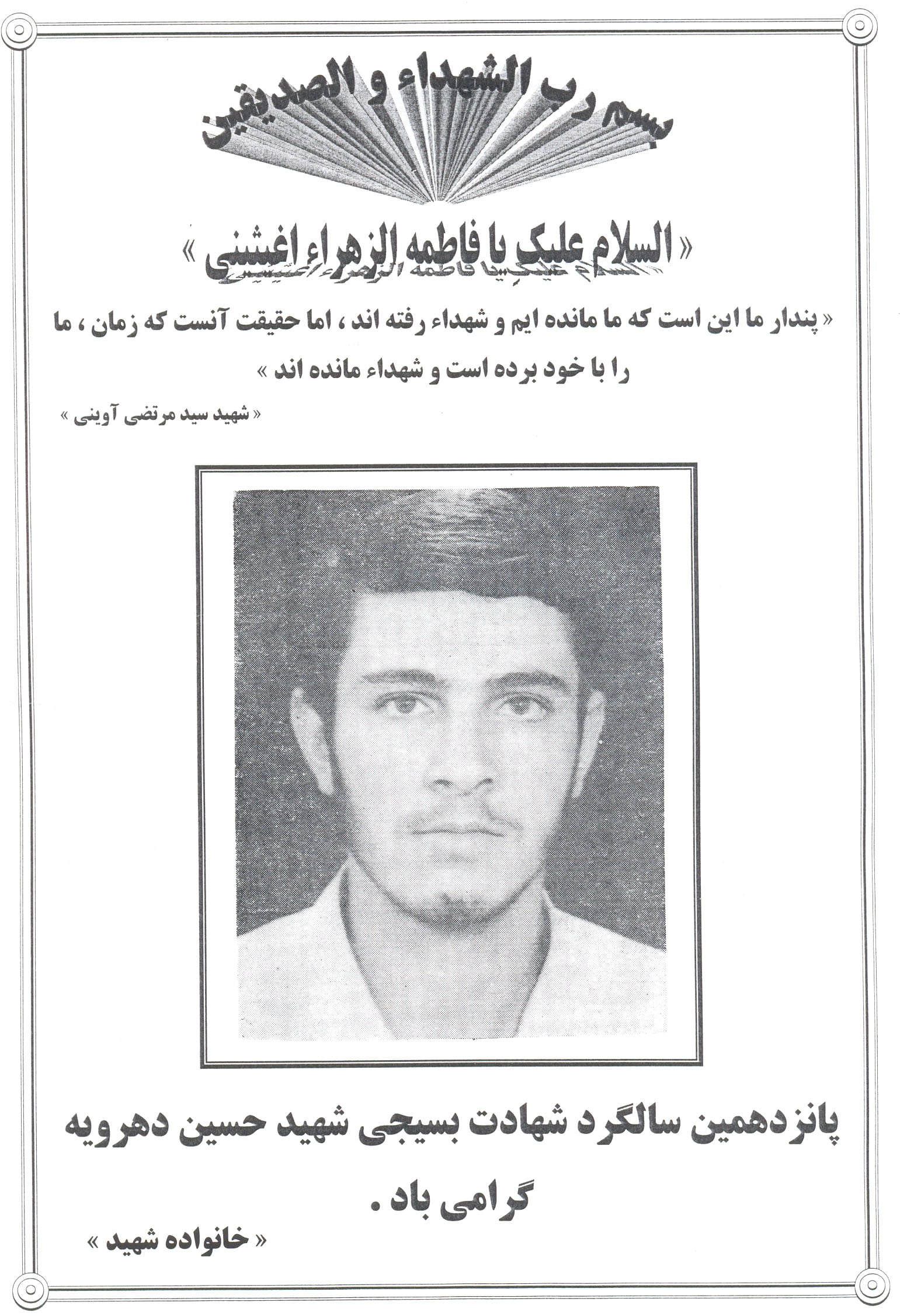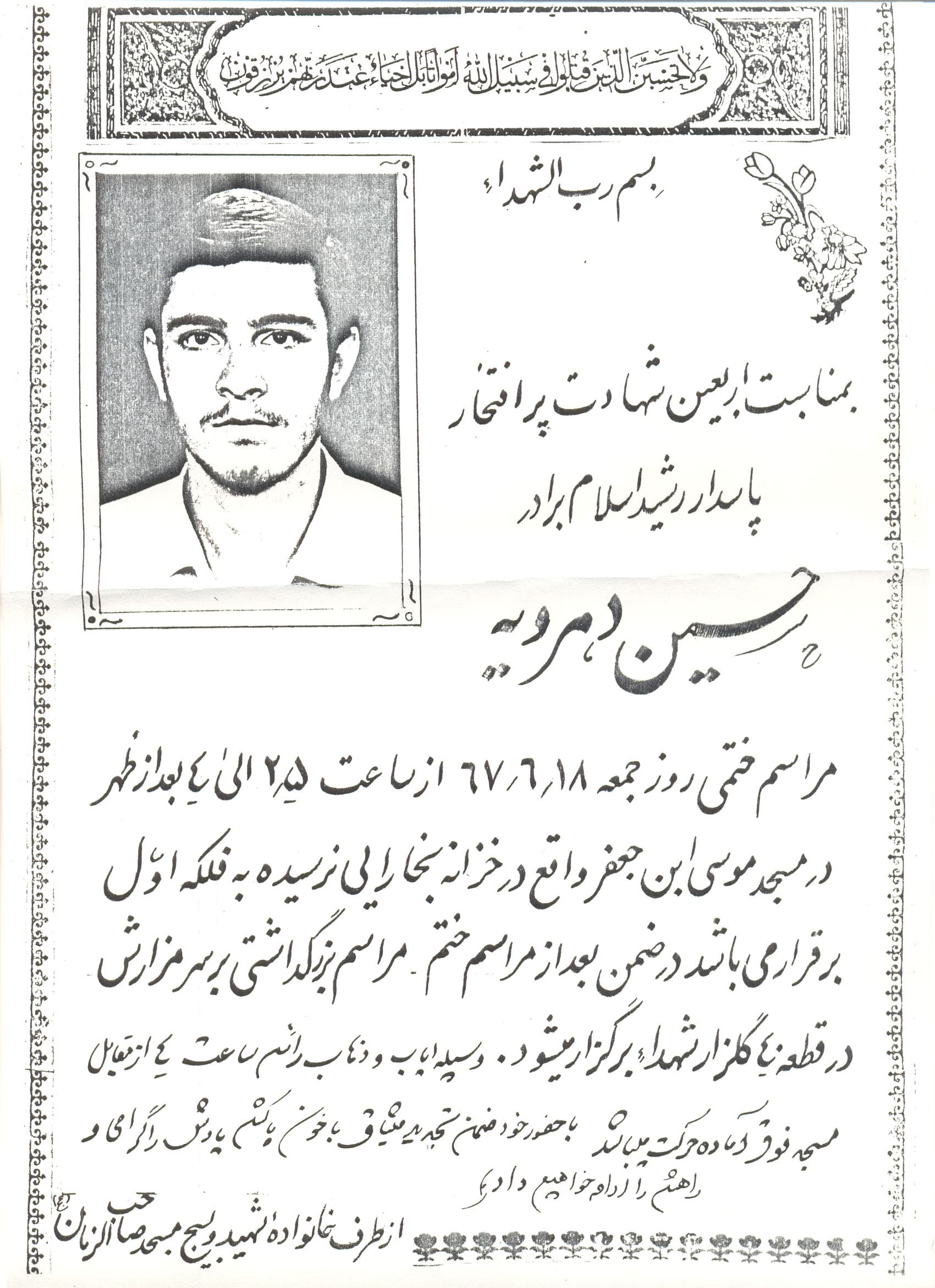 وصيت نامه بسيجي دريا دل شهيد حسين دهرويه