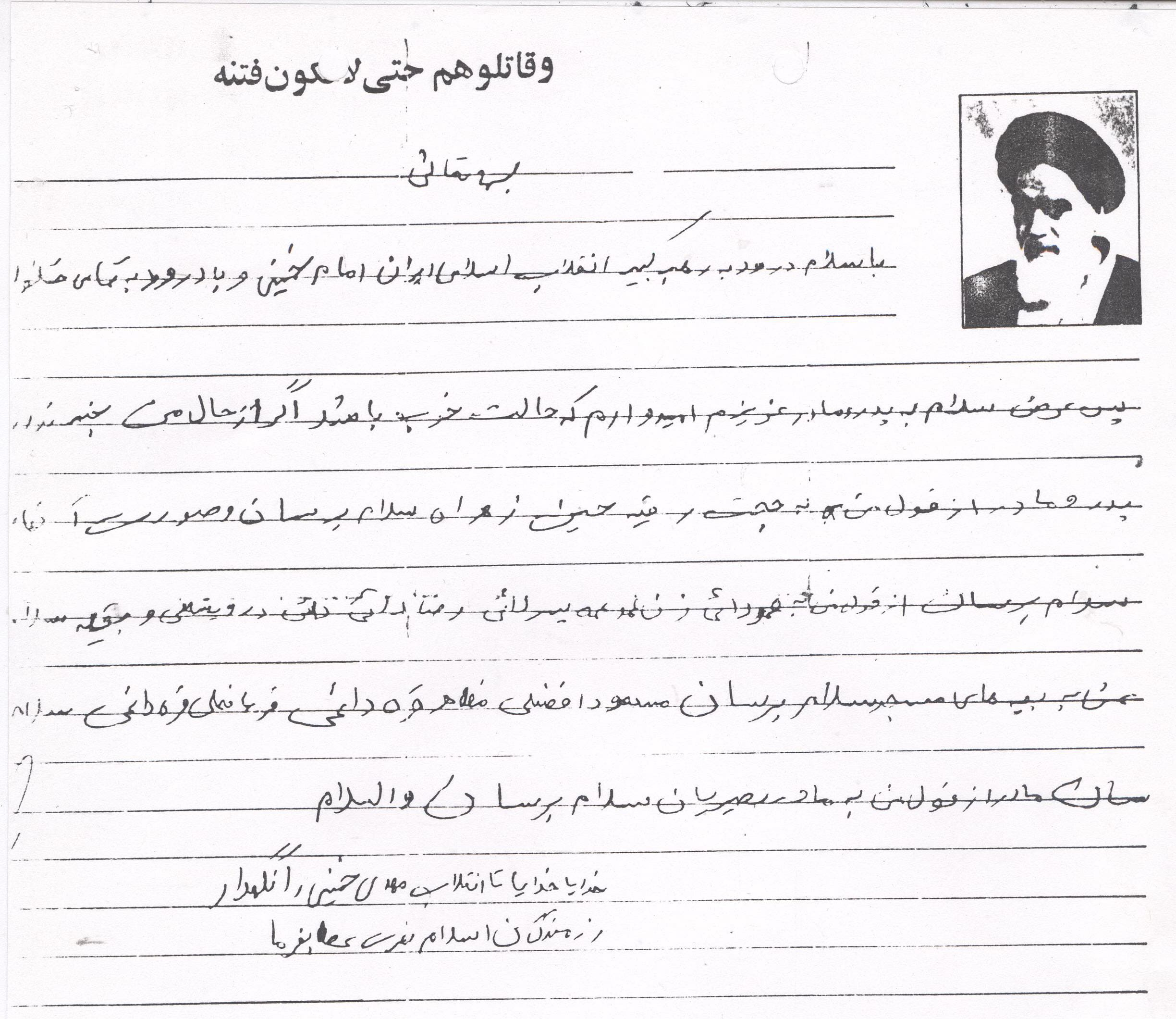 پدربزرگ ایشان پیشنماز مسجد بودند و سن 16 سالگی به جبهه رفت و چند بار رفت و آمد و 6 الی 7 بار زخمی شد که بار آخر دستش ترکش خورده بود که نمیتوانست وضو بگیرد و دستشان را مرتب میبایست زیر برق میگذاشت یک روز گفتم سعید جان دیگر راضی نیستم که بروی گفتند از تو بالاتر هست که بگذارد بروم و آن قرآن است شما این حرفها را نزنید.