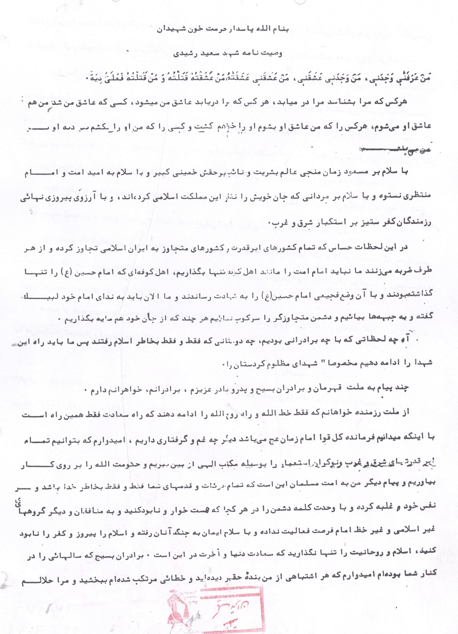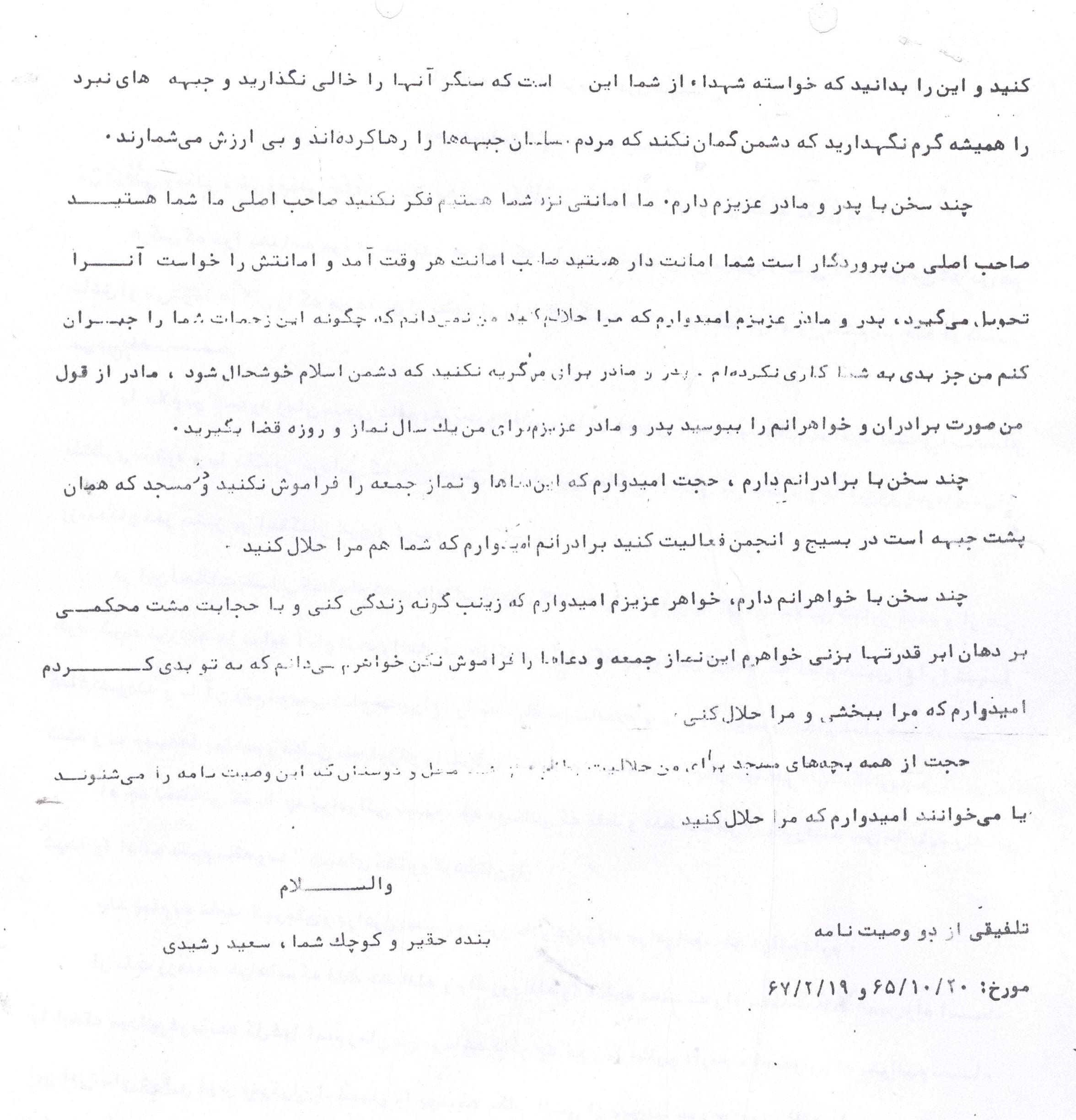 خاطرات برادر شهید سعید رشیدی: