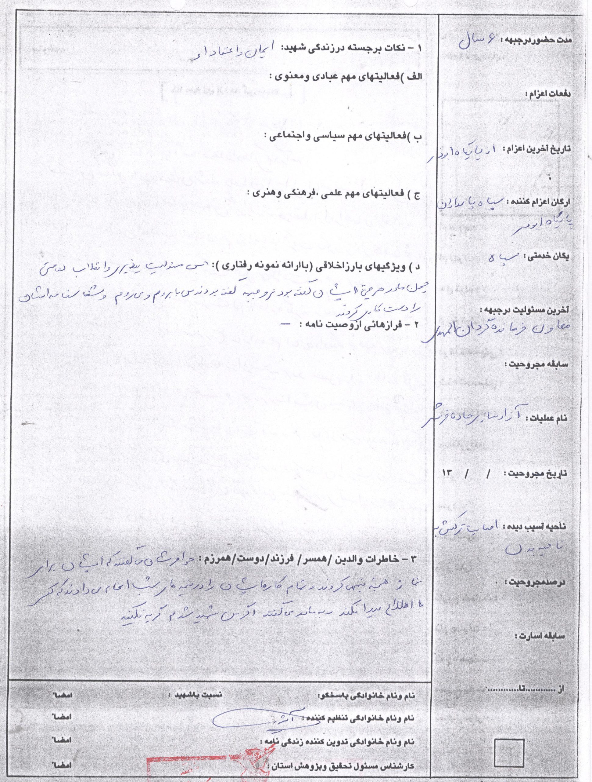 شهید حس مسئولیت پذیری و انقلاب دوستی چون مادر هر چی به ایشان گفته بود نرو جبهه گفته بود من باید بروم و میروم و شناسنامهاش را دست کاری کرده بود.